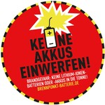 Falsch entsorgte Lithium-Akkus verursachen schwer zu löschende Brände in Sammelcontainern, in Müllfahrzeugen, an Umschlagplätzen oder in Recyclinganlagen. Mit der steigenden Verwendung von Batterien und ihrer immer höheren Energiedichte nimmt dies Gefahr weiter zu. Der Bundesverband der Deutschen Entsorgungs-, Wasser- und Rohstoffwirtschaft (BDE) unterstützt die Aufklärung der Bürgerinnen und Bürger mit einem Aufkleber für Abfallbehälter.