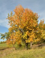 Trotz ihrer geringen Wuchshöhe ist die Echte Mehlbeere eine beeindruckende Baumart. Vor allem im Herbst zeigt sie ihre volle Schönheit, denn dann scheinen die orange bis scharlachrot gefärbten Früchte durch die gelb bis goldbraune Laubkrone. Aber auch im Frühjahr macht sie eine gute Figur. Die weißen Blüten verbreiten einen wohlriechenden Duft und locken zahlreiche Insekten an.