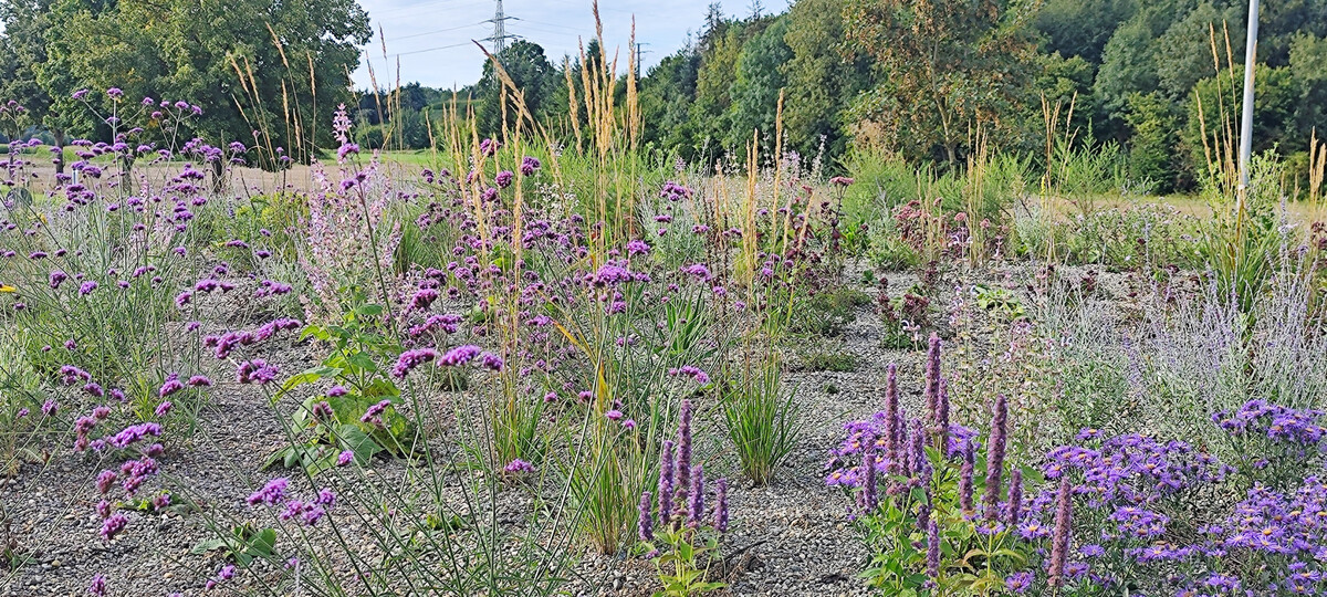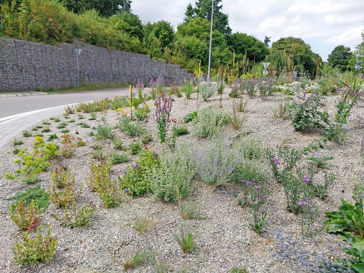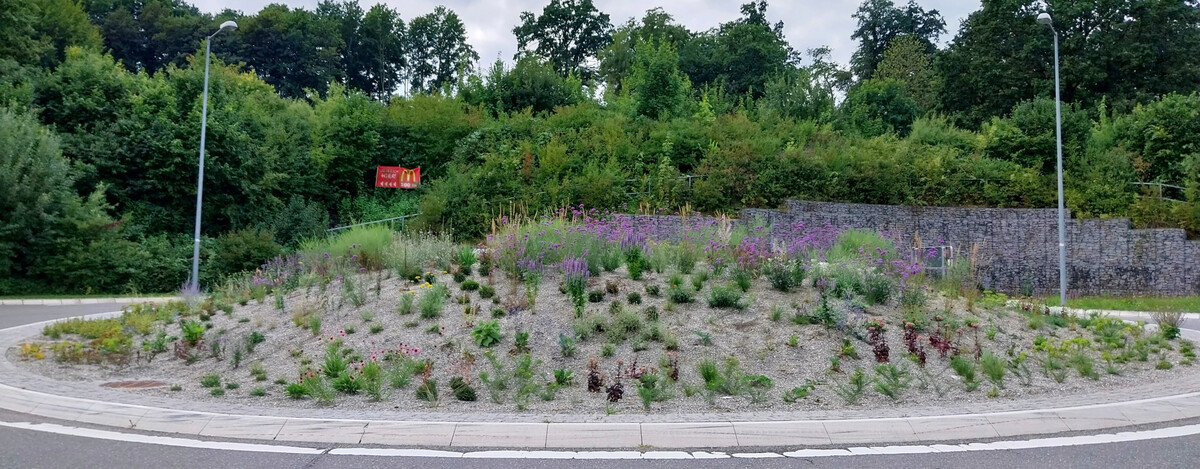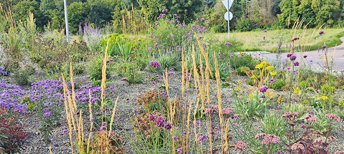 In der Ausgabe FM 2/2025 hatten wir die Neugestaltung eines Kreisverkehrs mit einer trockenheitsverträglichen und biodiversitätsfördernden Bepflanzung dokumentiert. Wir waren nun, dreieinhalb Monate danach, wieder dort und angenehm überrascht.