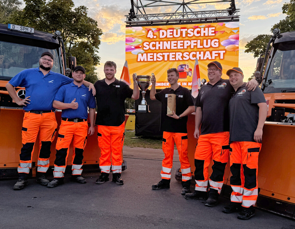 Mit Abstand am besten meisterte der amtierende hessische Schneepflugmeister den Parcours. Michael Wilhelmi und Lukas Kniesner von der Straßenmeisterei Oberweyer (nördlich von Limburg) sicherten sich damit den ersten Platz. Auf Rang zwei folgte die Straßenmeisterei Bingen (Rheinland-Pfalz), Platz drei belegte die Autobahnmeisterei Emmelshausen (Rheinland-Pfalz). Das Team der Stadt Marktredwitz – Julian Scharf und Noah Tröger – als Titelverteidiger landete auf einem respektablen vierten Platz. Die drei erstplatzierten Teams werden Deutschland bei der internationalen Schneepflug-Weltmeisterschaft im März 2026 in Chambéry (Frankreich) vertreten.