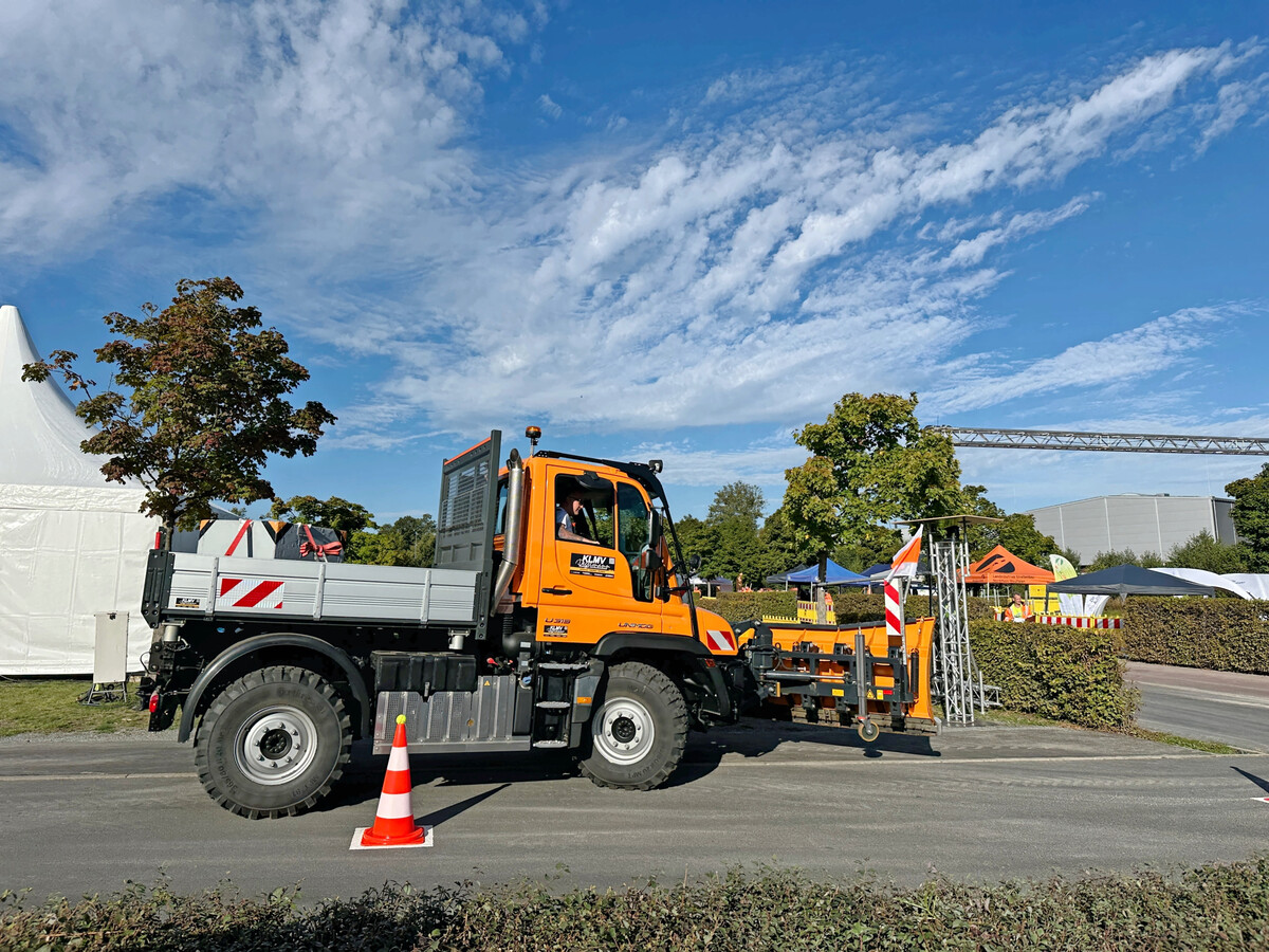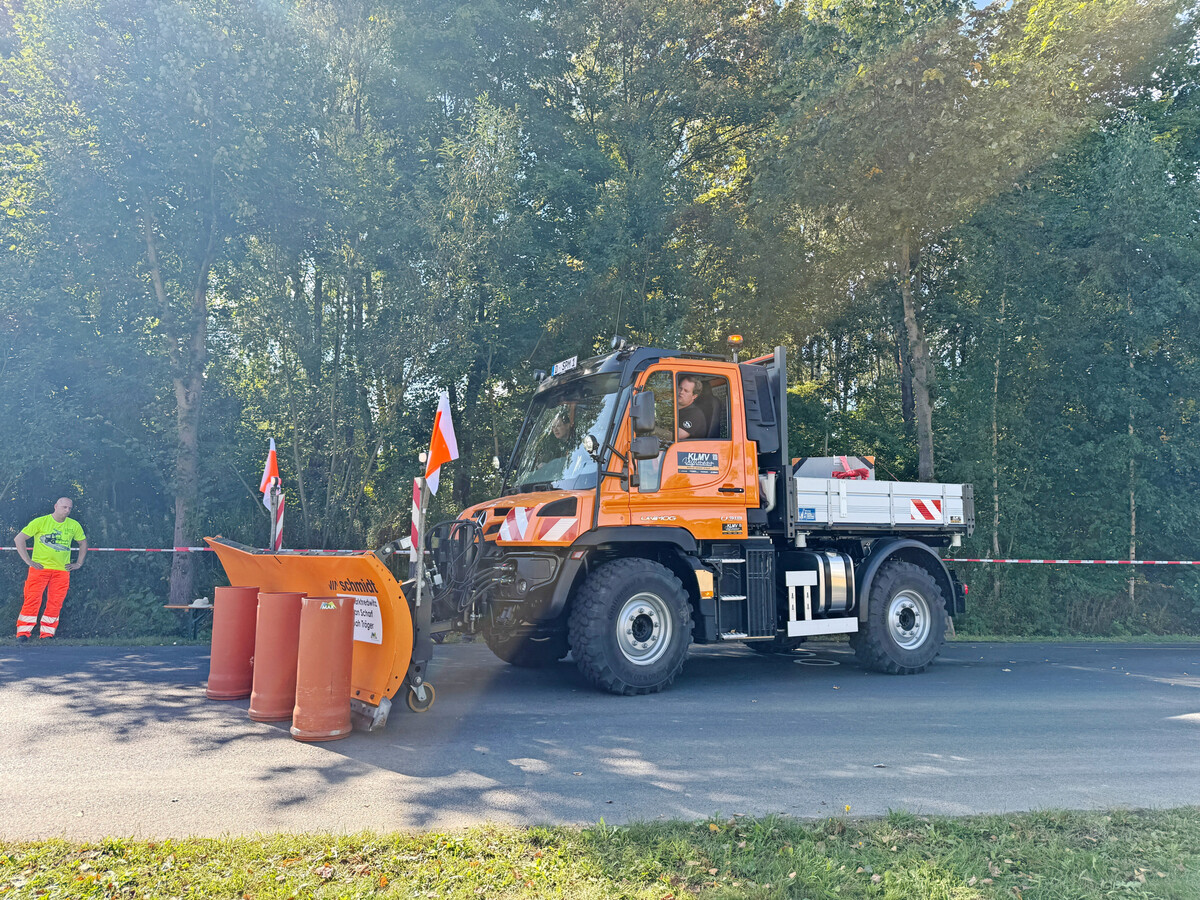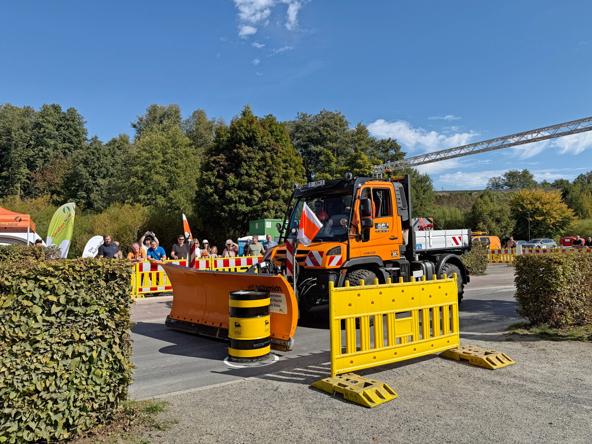 Der Wettkampf-Parcours bildete reelle Situationen im Winterdienst nach. Demnach mussten die Fahrer mit abwechselnd drei Unimog-Schneeräumfahrzeugen mit Uni-Touch-Bediensystem und montiertem Räumschild möglichst zügig und fehlerfrei die insgesamt 16 Stationen bewältigen – darunter präzises Rangieren, das Verschieben schwerer Gegenstände, millimetergenaues Fahren und Einparken im Rückwärtsgang. Neu in diesem Jahr war die gezielte Einbindung der Beifahrer in den Parcours. Bei einzelnen Hindernissen mussten sie aktiv eingreifen und gemeinsam mit dem Fahrer Aufgaben lösen. Das forderte den Teamgeist der teilnehmenden Mannschaften – eine wichtige Grundlage für den reibungslosen Winterdienst.