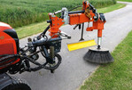 Ein Beispiel ist die Wildkrautbürste. Sie wird durch vier hydraulisch verstellbare Möglichkeiten für jeden Einsatz eingestellt. Der Kehrbesen lässt sich fast zu 180° schwenken. Vermietet werden auch Mulcher, Laubsammler, Bodenumkehrfräsen und Anbaugeräte für den Winterdienst.