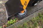 Einfache Reinigung von Kopfsteinpflaster oder Randsteinen Wie auch die herkömmlich motorisierten Modelle, entfernt die AS 30 EWeedHex Wildkraut besonders kraftvoll. Das liegt am hohen Drehmoment bei gleichzeitig niedriger, weil untersetzter Bürsten-Drehzahl von nur 600 U/min. Unebene Flächen wie auf Kopfsteinpflaster oder entlang von Randsteinen und Ablaufrinnen können damit effizient gereinigt werden. Durch die einzeln höhenverstellbaren Räder lässt sich die Bürste der AS 30 E-WeedHex neigen, sodass auch Randbereiche oder schwer zugängliche Stellen von Unkraut befreit werden können. Je nach Einsatzgebiet und Bodenbelag, stehen für den Wildkrautentferner unterschiedliche Bürsten zur Verfügung: Während sich für empfindliche Oberflächen wie Naturstein oder Holzdielen die Spezialbürste aus Nylon empfiehlt, ist das Gerät serienmäßig mit einer Tellerbürste aus Stahl ausgestattet.