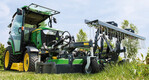 Neue Produkte, u.a. Großflächenroboter, Akku-Nachsägerät, Bodengranulat, Bodenbelag und Schlegelmäher.