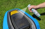 Bei regelmäßiger Anwendung schützt es Kunststoffe vor UV-Strahlung, quasi wie eine Sonnencreme für den Mähroboter. „Das Mittel zieht in die Kunststoffoberfläche ein. Dort wandelt es auftreffende UV-Strahlung in Wärme um, so dass die UV-Strahlung nicht den darunter liegenden Kunststoff schädigen kann“, sagt David Kaiser, Leiter Forschung und Entwicklung bei LIQUI MOLY. Das Spray ist für alle gängigen Kunststoffe geeignet. Es sorgt dafür, dass das Material nicht spröde und brüchig wird. „Und zwar mit Langzeitwirkung“, so David Kaiser.
