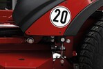 Elegant wurden die Schalterfunktionen in den klappbaren Fahrhebel integriert: So können LED-Lichter und Hupe ganz nebenbei betätigt werden, ohne die Hand von der Steuerung zu nehmen. Die patentierte Einzelradfederung der Ferris Nullwendekreismäher lädt zum dauerhaften Verweilen auf dem komfortablen Fahrerstand ein: Die Vibrationswerte sind so gering, dass er laut Berufsgenossenschaftlicher Regeln für ganztägige Arbeitseinsätze qualifiziert. Ob auf der Fläche, in leicht ansteigendem, auch unebenem Gelände oder jetzt neu auch auf der Straße, das starke Profil der 26-Zoll-Vorderreifen gibt jederzeit ordentlich Grip für sicheres Arbeiten.
