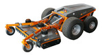 Mit dem wendigen Zero-Turn-Radius(ZTR)-Lenksystem und dem Allradantrieb lässt sich das Gerät leicht manövrieren. Mit der Funk-Fernbedienung kann der Hybridmäher aus sicherer Entfernung präzise gesteuert werden. Raymo ist nicht nur ein Mäher, sondern auch als Werkzeugträger für zusätzliche Elektrowerkzeuge und Anbaugeräte konzipiert. Landschaftsgärtner können unterschiedlichste Arbeiten schneller und mit einem Gerät erledigen – das spart Aufwand und Kosten. Demnächst bietet Rumsauer weitere Komponenten an, beispielsweise zum Schneeräumen, Vertikalschneiden, Fegen, Laubblasen oder Abkanten.