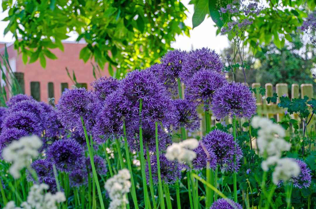 Neu am Markt z. B. Allium 'Universe', der durch einen Blütenstand beeindruckt, welcher nahezu Fußball-Größe erreicht. Die Blütenstiele sind äußert robust und erreichen einen Durchmesser von bis zu 2 cm und eine Höhe von ca. 60 – 80 cm, sodass Extremwetterlagen sehr gut toleriert werden. Die Blütenfarbe ist metallisch violett-purpur und zieht Insekten förmlich an. Während der Blütezeit zeigen die Laubblätter immer noch eine gesunde Grünfärbung auf.