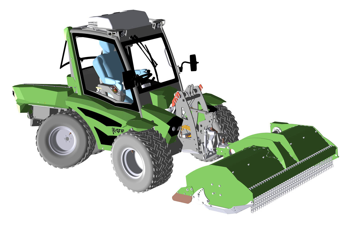 Seit 2023 arbeitet das Unternehmen an dem Fahrzeug, das für den Ganzjahreseinsatz bei Kommunen, Gewässerunterhaltung, Straßenmeistereien sowie im alpinen Gelände konzipiert ist. Der Geräteträger lässt sich mit verschiedenen Anbaugeräten wie Doppelmessermähwerken, Mulchgeräten, Bandrechen sowie weiteren kommunalen Anbaugeräten wie einem Gießarm mit Wassertank oder einem Schneeschild mit Aufbaustreuer kombinieren. Das Fahrzeug bietet die Möglichkeit, durch ein Schnellwechselsystem die Anbaugeräte zu tauschen ohne das Fahrzeug zu verlassen.