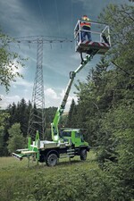 Die permanente Bodendrucküberwachung an allen Abstützzylindern sorgt für maximale Sicherheit während des Freischneidens von Bahn- und Energietrassen oder der Wartung von Stromleitungen. Mehr noch: Mit einer seitlichen Reichweite von bis zu 16,9 m entfällt das häufige Umsetzen des Fahrzeugs während des Arbeitseinsatzes.