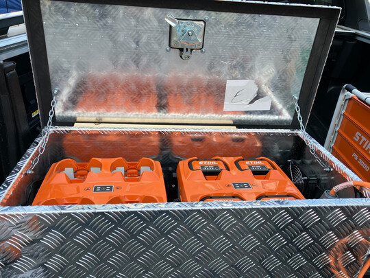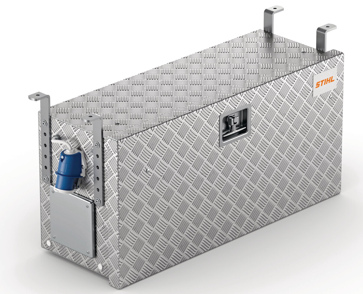 Damit am Einsatzort stets genug Energie zur Verfügung steht, zeigt Stihl hilfreiche Lösungen für das stationäre und mobile Lademanagement. Bis zu acht Akku-Packs aus dem Stihl AP System transportiert und lädt die neue Stihl CB 1 Ladebox zuverlässig - und dank IPX4-Zertifizierung zudem sicher vor Spritzwasser.