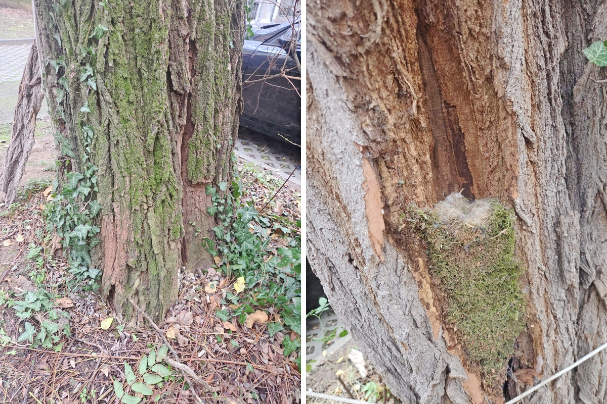 Diese absterbende Robinie ist ein gutes Beispiel dafür. Durch die Wurzelfäule beginnt sich die Rinde abzulösen und bietet dadurch Nistplätze für Vögel. Sie zeigt anschaulich, wie die Bedürfnisse von Mensch und Natur oft im Konflikt zueinander stehen. Unsere Aufgabe ist es daher, Menschen kompetent zu beraten und Zusammenhänge verständlich zu erklären.“