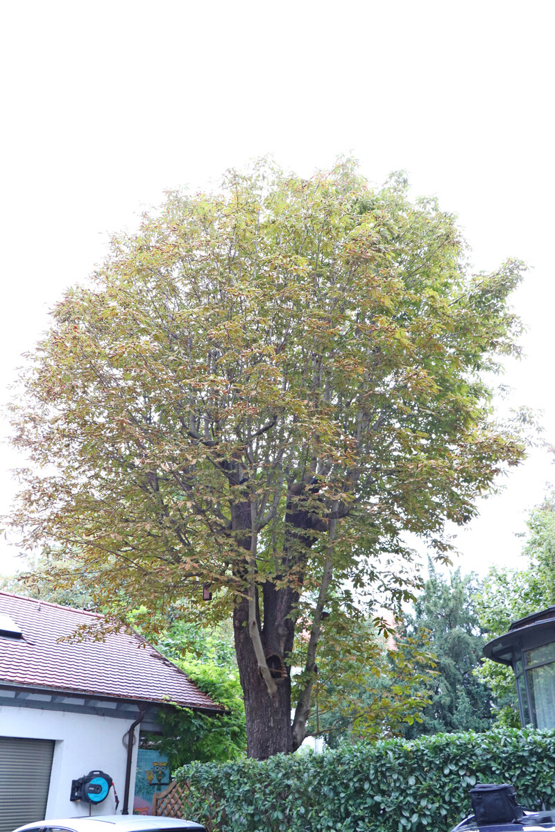 Eine Aesculus hippocastanum sollte vor fast 20 Jahren gefällt werden. Die Mutter der heutigen Baumeigentümerin forcierte die Fällung aufgrund der mit dem Baum verbundenen Arbeit und des berühmten „Baumdrecks“. Aus heute nicht mehr nachvollziehbaren Gründen lag sogar eine Ausnahmegenehmigung für die Befreiung von den Verboten der Baumschutzsatzung vor. Dem Einsatz der Tochter, die den Baum aus ihrer Kindheit kannte, ist es zu verdanken, dass nach tagelanger Diskussion die Kappung als Kompromiss wenigstens den Erhalt eines stark geschädigten Baumes gewährleistete.