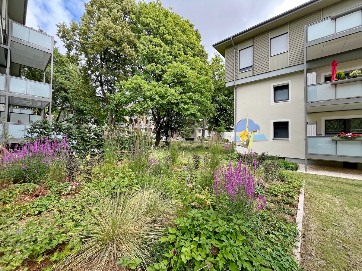 Wie wichtig das ist, zeigt sich an der Entwicklung des Quartiers Bergmannsgrün. Die Dachaufstockungen der Gebäude mussten mitten in einer gewachsenen Grünanlage mit zahlreichen Altbäumen und Großgehölzen realisiert werden. Das bedeutete Kräne, Baumaschinen und Schwerverkehr mitten im Bestand.