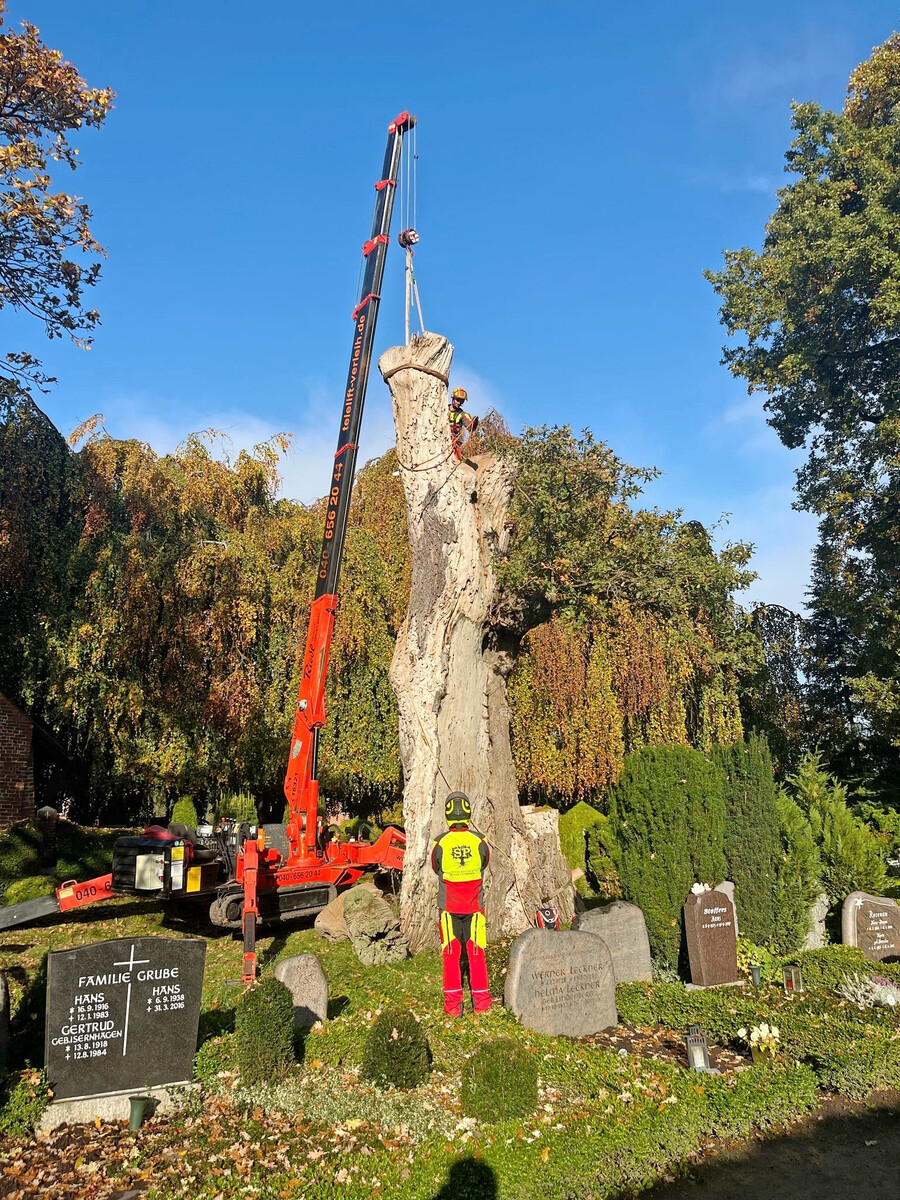 - Tätigkeitsfelder: Baumpflege, Fällungen, Stubben fräsen, Gutachten, SKT