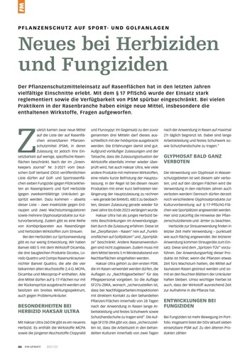 Zuletzt kamen zwar neue Mittel auf die Liste der auf Rasenflächen einsetzbaren Pflanzenschutzmittel (PSM), in deren Zulassung ist jedoch ihre Einsetzbarkeit auf wenige, spezifische Rasenflächen beschränkt. Nach der im "Greenkeepers Journal" Nr. 3-2021 vom Deutschen Golf Verband (DGV) veröffentlichten Liste dürfen auf Golf- und Sportrasenflächen sieben Fungizide (gegen Pilzkrankheiten an Rasengräsern) und fünf Herbizide (gegen zweikeimblättrige Unkräuter) gespritzt werden. Dazu kommen - abseits dieser Liste - zwei Insektizide gegen Erdraupen und zwei Wachstumsregulatoren sowie mehrere Glyphosatprodukte zur Kulturvorbereitung. Zudem gibt es eine Reihe von Kombipräparaten aus Rasendünger und herbiziden Wirkstoffen zum Streuen.