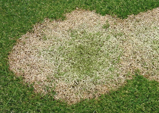 - Romeo unterscheidet sich noch mehr von den „üblichen“ Fungiziden. Es wirkt auf der Basis des Wirkstoffs Cerevisane. Dabei handelt es sich nicht um eine Chemikalie, sondern um die Zellwände abgetöteter Zellen von Bäckerhefe. Ich tue mich schwer, diesen Wirkstoff unter die Kontaktmittel einzugruppieren, denn die breite fungizide Wirkung soll nach Herstellerangaben durch eine „induzierte Resistenz“ erzeugt werden. Zugelassen ist Romeo immerhin zur Bekämpfung von Schneeschimmel, Typhula-Fäule, Rhizoctonia, Dollarfleck, Anthracnose und Blattfleckenerregern – ein wahrlich breites Wirkungsspektrum.