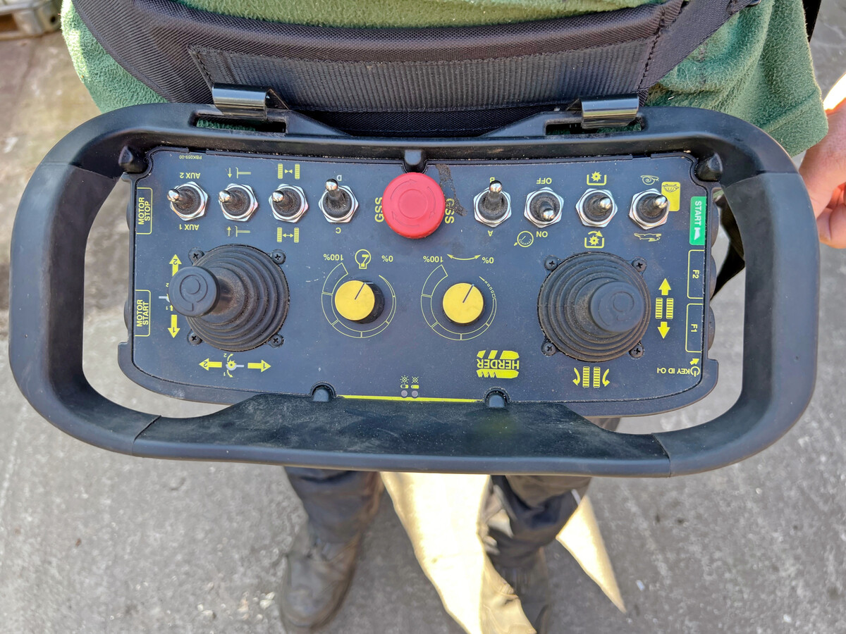 Bedient werden Stockfräsen heute durchgängig mit einer Funkfernsteuerung. Sie hat den Vorteil, dass man sich immer optimal positionieren kann. Einzelne Modelle gibt es aber auch weiterhin mit einer Kabelsteuerung (Herder) oder mit einem Bedienstand.