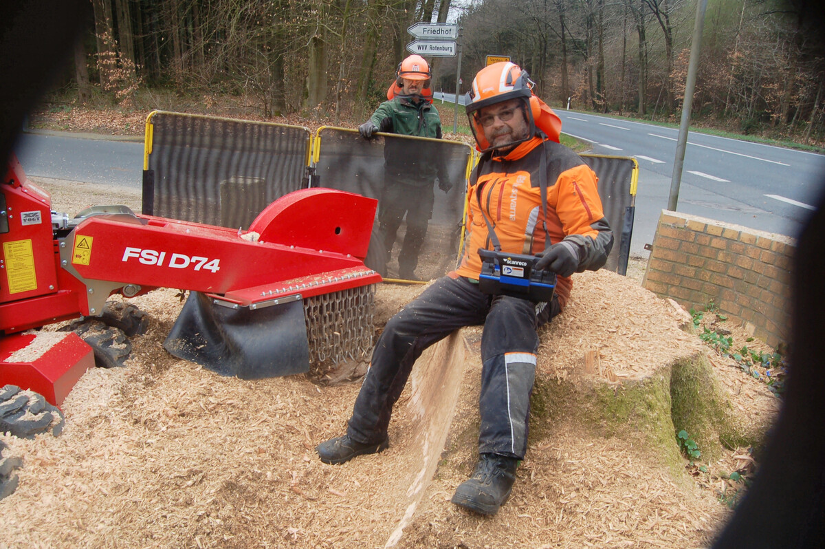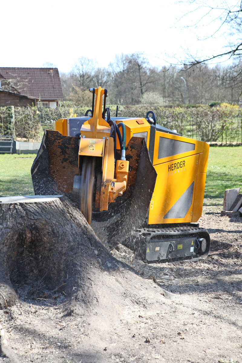 Insgesamt ist die Herder-Fermex eine sehr gute Stockfräse. Bei den ganz großen Stubben ist sie aber nicht allererste Wahl, denn man kann dann mit ihr am Stock defensiver arbeiten. Wenn man in einem Schwenk zu viel Material wegnimmt, verliert das Fräsrad die nötige Geschwindigkeit.