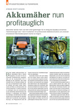 Die Weiterentwicklungen bei Akkugeräten gehen rasant und erobern jetzt auch die professionelle Großflächenmahd, ferngesteuerte Mäher sowie die Extensivflächenmahd. Grundvoraussetzungen dafür sind innovative Hersteller, leistungsfähigere Energiespeicher, eine ausgefeilte Motorsteuerung sowie...